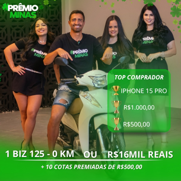 PRÊMIO PRINCIPAL: 1 BIZ 125 OU 16 MIL NO PIX + 1 MIL DE BRINDE SE ESTIVER EM UM DOS NOSSOS GRUPOS VIP DO WHATSAPP
